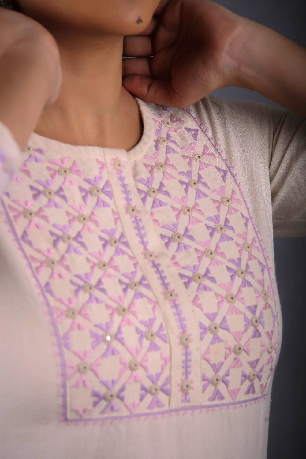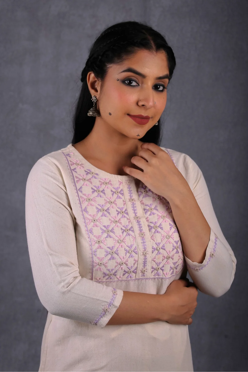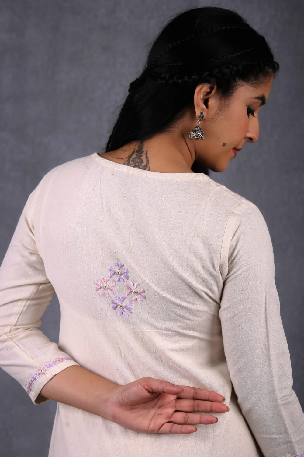 Introducing the Banjara 3.0 craftsmanship with our Antara Straight Kurta, a celebration of heritage and contemporary style. This kurta features an Straight fit silhouette, made from the finest off-white handloom fabric woven by the skilled hands of Thar weavers from Pugal, Bikaner.